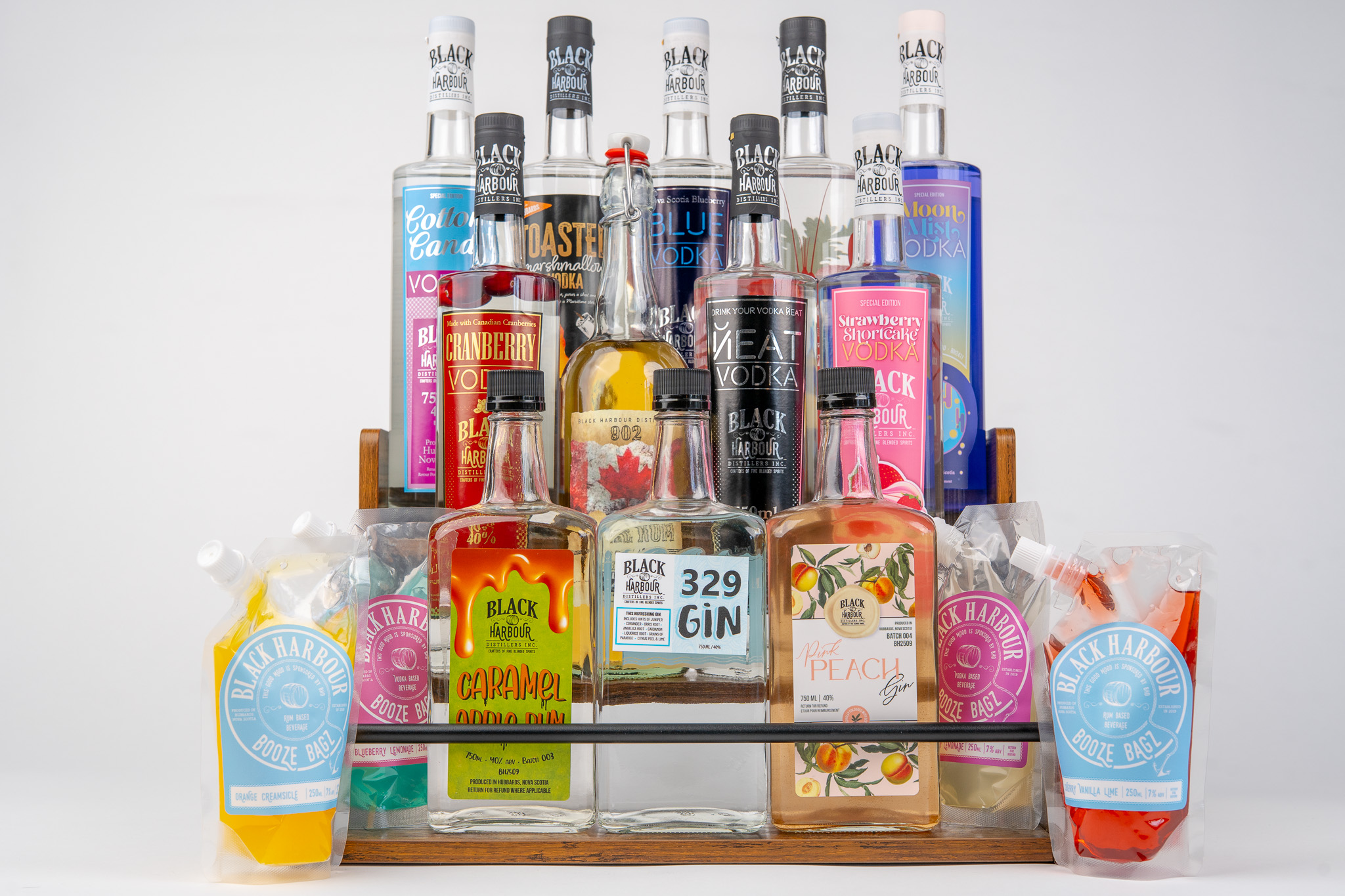 The distillery produces a diverse lineup of craft spirits, including vodka, rum, and gin, along with ready-to-drink beverages. Known for its imaginative approach, Black Harbour Distillers has developed unique products such as flavoured vodkas, seasonal releases, and limited-edition spirits designed to stand out in the market. Signature offerings have included creative concepts like Moon Mist Vodka, cranberry-infused vodka with real fruit in the bottle, and maple rum made using locally sourced maple syrup.