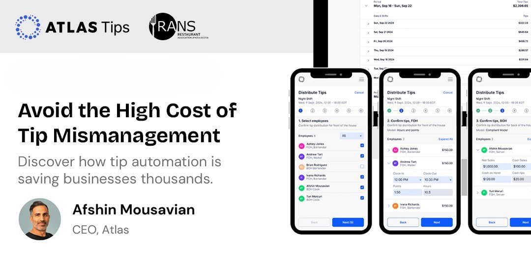 The Restaurant Association of Nova Scotia is pleased to share Part 2 of our webinar series: “Tipping Compliance in Nova Scotia: What Every Operator Should Know.” Presented by Atlas and Taxation Lawyers, the session features Co-Founder Afshin Mousavian and tax expert James Rhodes, delivering a clear and practical breakdown of the crucial difference between “Direct” and “Controlled” tipping practices. This second part goes deeper — showing you how to stay compliant with the Canada Revenue Agency (CRA), protect your business from CPP/EI exposure, and simplify tip division and distribution to save time and reduce administrative burden. Whether you operate a full-service or quick-service restaurant, café, hotel, golf club, or winery, this webinar will help you understand how to implement a compliant, efficient tipping model.